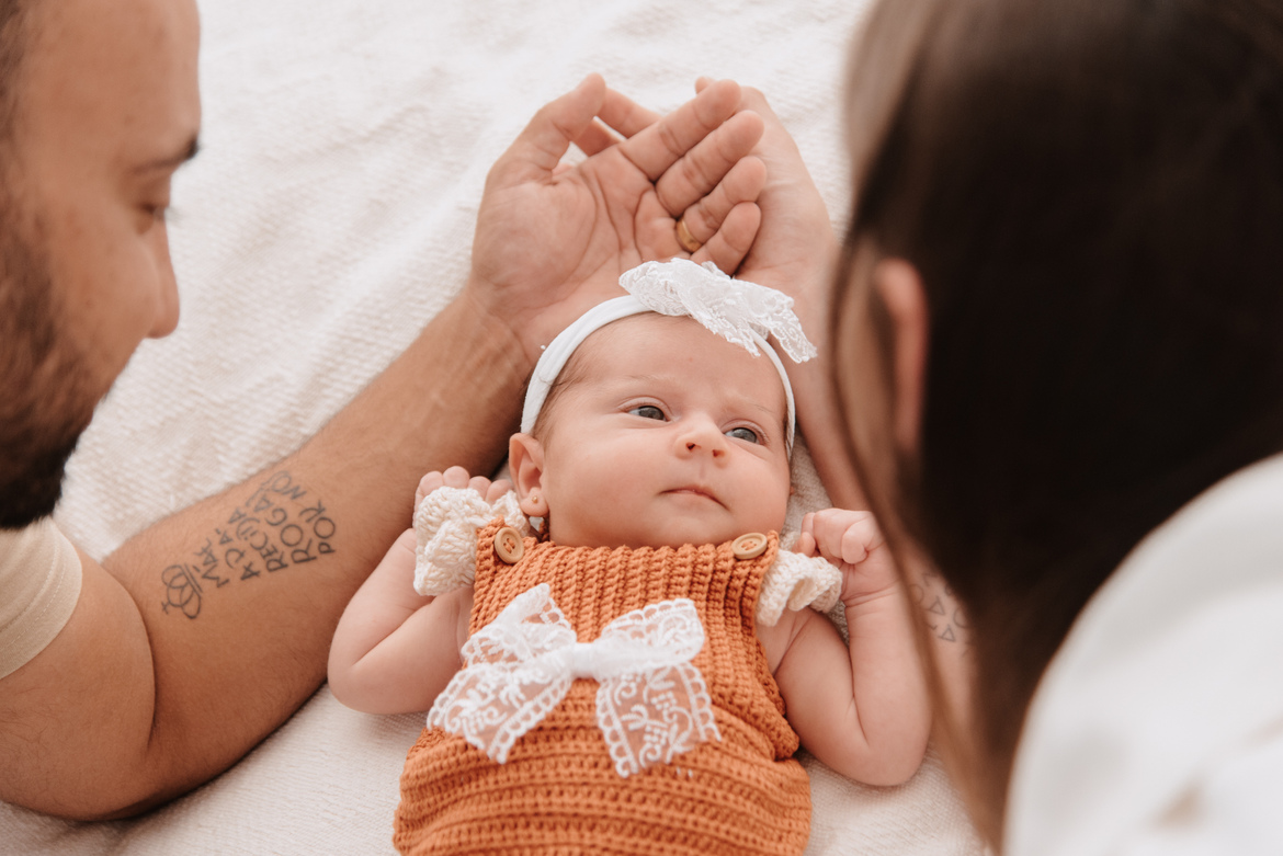 O ensaio newborn registra o bebê, mas também guarda a emoção dos pais.